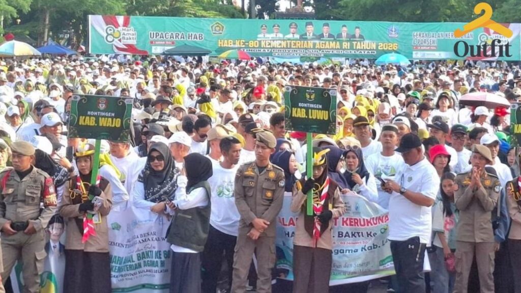 Kementerian Agama Republik Indonesia memperingati Hari Amal Bakti (HAB) ke-80 dengan menggelar kegiatan besar yang melibatkan puluhan ribu peserta. Sedikitnya 38 ribu orang memadati pembukaan Pekan Olahraga dan Seni (Porseni) serta Jalan Sehat Kerukunan yang dipusatkan di Kabupaten Bone, Sulawesi Selatan.
